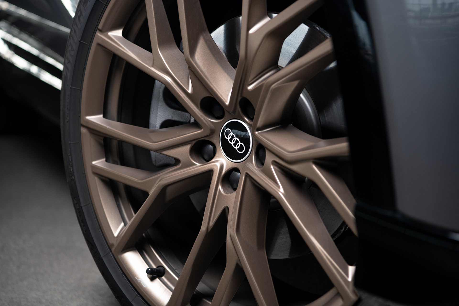 Onze Q4 had het optionele Edition One pakket, dit houdt in dat we deze zeer bijzondere 21 inch koperen velgen hadden op deze Q4. Daarnaast ook de 'shadow look plus', die er voor zorgt dat alle chrome delen zwart zijn gemaakt en ook nog de gekende dynamische lichten zitten in dit pakket.