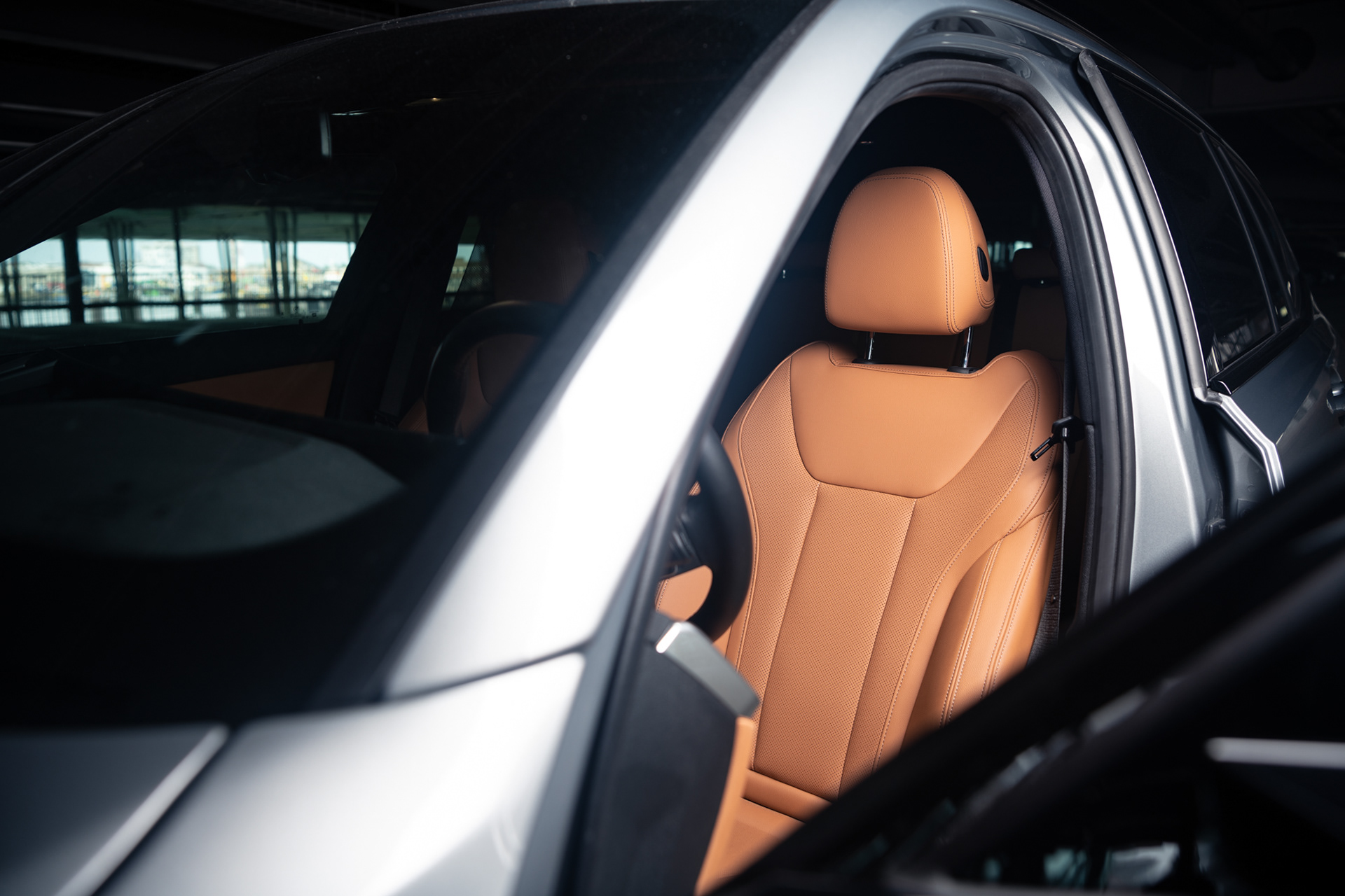 De BMW 320e Touring die wij getest hebben werd uitgevoerd in het Skyscraper grijs en met een Sensatec geperforeerd Cognac interieur. Deze combinatie zorgt voor een echte klasse uitstraling.