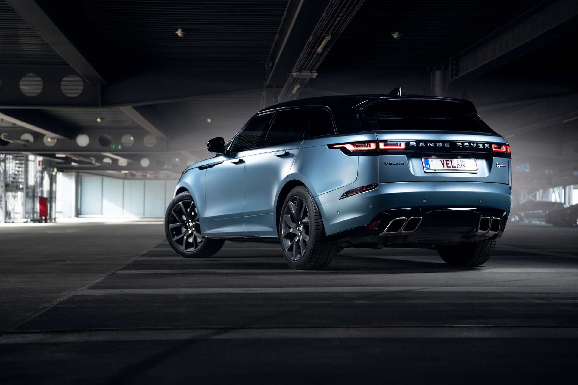 Het design van de Velar SV is zo goed als hetzelfde als de 'normale' Velar, maar de SV heeft een sportievere voor en achterbumper en vier uitlaatpijpen, die een prachtig geluid produceren.